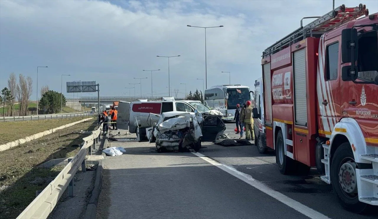 AA'dan alınan habere göre: TEM Otoyolu Silivri mevkisinde hafif ticari aracın çarptığı otomobildeki 3 kişi hayatını kaybetti.