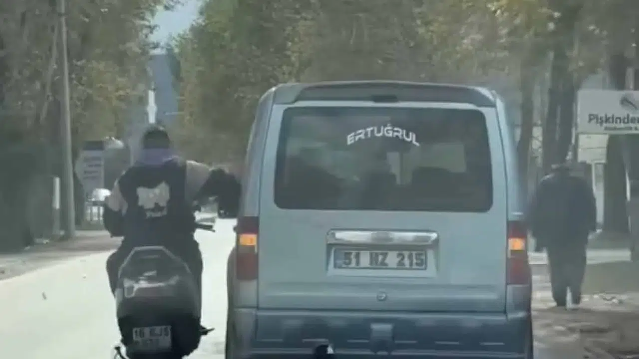 Trafiği ve kendi canını hiçe sayan sürücülerin bu tehlikeli yolculuğu cep telefonu kamerasıyla anbean kaydedildi.