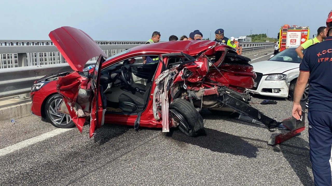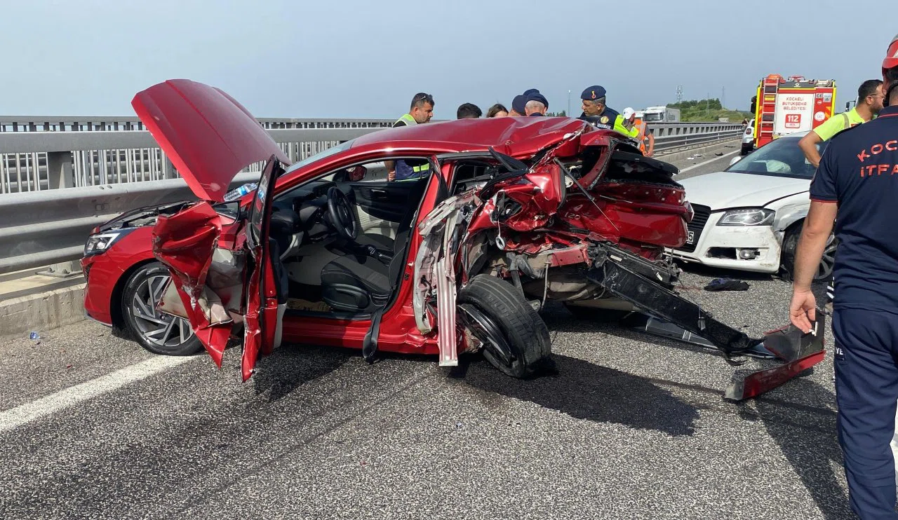 Kuzey Marmara Otoyolu Kocaeli geçişinde 3 aracın karıştığı zincirleme kazada 5 kişi yaralandı. Kazada otomobil kağıt gibi ezilirken, hava yastıklarının açılmaması dikkat çekti.