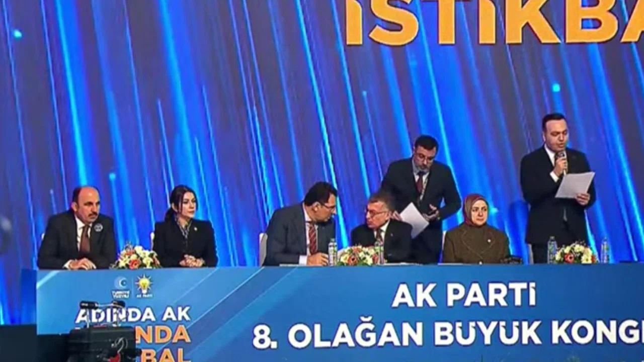 Ankara Spor Salonu'nda gerçekleştirilen AK Parti 8. Olağan Büyük Kongresi'nde, AK Parti Tüzüğü'ne uygun olarak kongreyi yönetmek ve divan başkanlığını üstlenmek için seçim yapıldı. AK Parti Teşkilatlardan Sorumlu Genel Başkan Yardımcısı Erkan Kandemir, salonda kongrenin toplanması için gerekli delege sayısının belirlendiğini ve yeterli çoğunluğun sağlandığını açıkladı. Böylelikle kongre resmen açıldı.