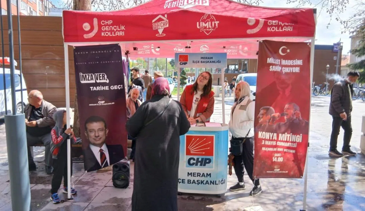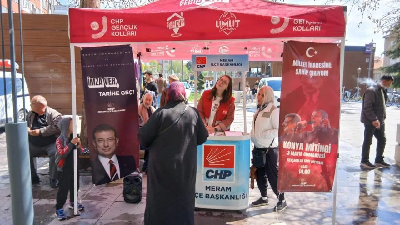 CHP Meram İlçe Başkanlığı, 3 Mayıs 2025 Cumartesi günü Genel Başkan Özgür Özel’in katılımıyla gerçekleştirilecek olan "Büyük Konya Mitingi" için çalışmalarını sürdürüyor. İlçe teşkilatı, bir yandan mitinge davet çalışmalarını sürdürürken, diğer yandan imza kampanyası faaliyetlerine de hız kesmeden devam ediyor.