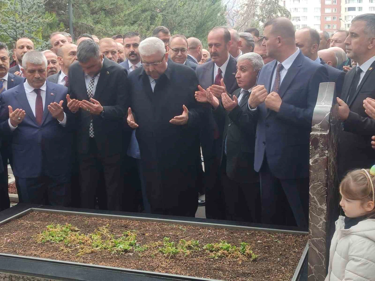 Semih Yalçın, beraberindeki partililerle birlikte Türkeş’in kabrine kırmızı karanfiller bırakarak dua etti ve mezara su döktü. Anma töreni, duaların okunmasıyla sona erdi.