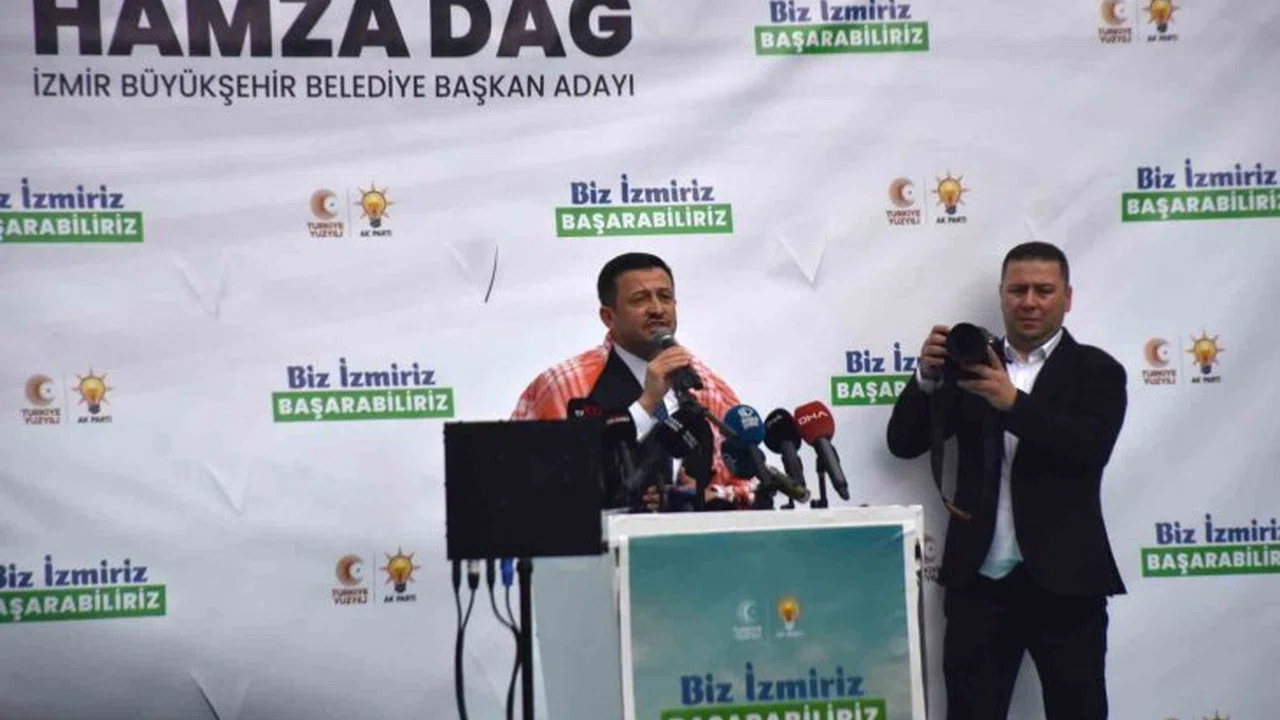 Havaalanında oluşturulan miting alanında İzmirlilere seslenen Hamza Dağ, "Cumhurbaşkanımız Recep Tayyip Erdoğan'ın takdirleriyle bugün hep birlikte yeni bir yola çıkıyoruz. Şehrimizin ihtiyaçlarına, gençlerimizin meselelerine, esnafımızın beklentilerine, sanayicilerimizin isteklerine, çiftçilerimizin sorunlarına, hasılı İzmir'in ve İzmirli'nin tüm mesele ve dertlerine biz vakıfız, bunları çözecek iradeye de biz sahibiz. Biz istiyoruz ki; Bornova Küçükpark'taki öğrenci kardeşlerimiz bu şehirde yaşarken sürekli eziyet çekmek zorunda kalmasın. Gençlerimiz mezun olduktan sonra iş bulmak için bu güzel şehre veda etmesin. Karşıyaka Alaybey'de yaşayan Başımızın tacı emeklilerimiz nefes alacak bir yer bulamadığı için eve mahkum olmasın. Konak Kemeraltı ve Anafarthalar'daki Esnafımız her yağmur yağdığında "İşyerimi su mu basacak?" diye kaygılanmasın. Çiğli Organize Sanayi'de sanayicilerimiz dünyayla yarışması gerekirken yerel bir aktör olarak kalmasın. Tüm İzmirliler, ulaşım zorluğundan saatlerini yolda geçirmeye mecbur kalmasın. Daha nice sorunlar, garabetler. Ne yazık ki yumak olmuş Güzel İzmir'imizde. Fakat ümitsizliğe ve karamsarlığa asla ve asla yer yok. Çünkü biz İzmir'iz, başarabiliriz" diye konuştu.