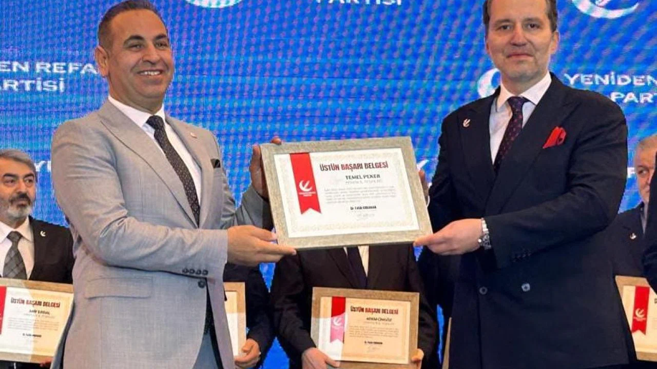 Yeniden Refah Partisi Genel Başkan Dr. Fatih Erbakan, Konya İl Başkanı Temel Peker’e Yeniden Refah Partisi'nin Genel Merkezi’nde düzenlenen törende yapmış oldukları başarılı çalışmalardan ötürü plaket vererek teşekkür etti.