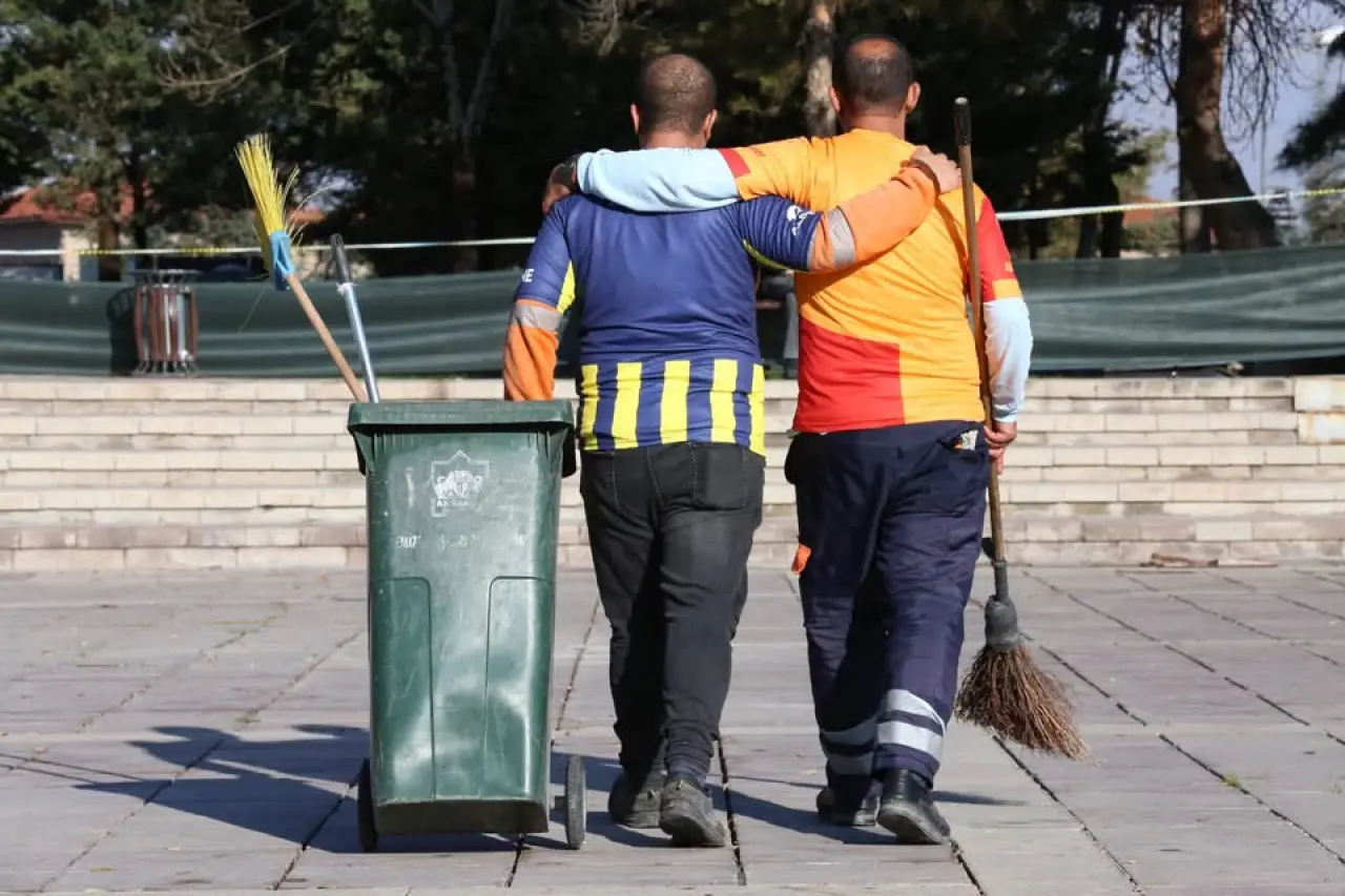 Yıllardır aynı sokakları birlikte temizleyen iki mesai arkadaşı, ezeli rekabeti bir kenara bırakıp “dostluğu” ön plana çıkaran samimi mesajlarıyla takdir topladı.