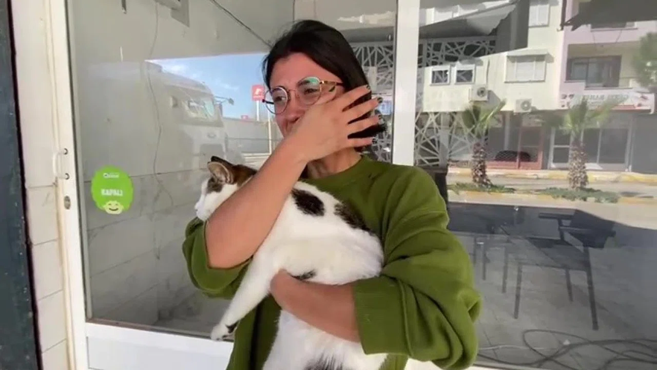 Genç kızın ağlamaklı halini gören bir esnaf, iş yerinden getirdiği büyük merdiven yardımıyla gölgelik üstüne çıkarak kediyi kurtararak genç kıza teslim etti. Kedisine kavuşan genç kız ise bu kez de sevinçten gözyaşlarına hakim olamadı. İsminin açıklanmasını istemeyen genç kız, "Çok mutluyum, kedime kavuştum. 4 yıldır beslediğim bir kedi" dedi.