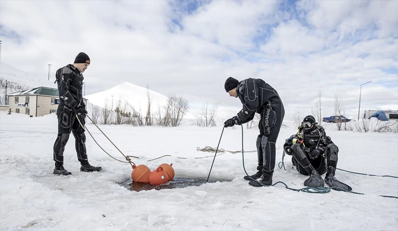 Kayakçının düştüğü bölgeye ulaşan 6 kişilik SAK timi, ağırlığı yaklaşık 30 kilogramı bulan teçhizatlarını kuşandıktan sonra derinliği 8 metreyi, alanı da 750 metrekareyi bulan gölete tüplü dalış yaptı.