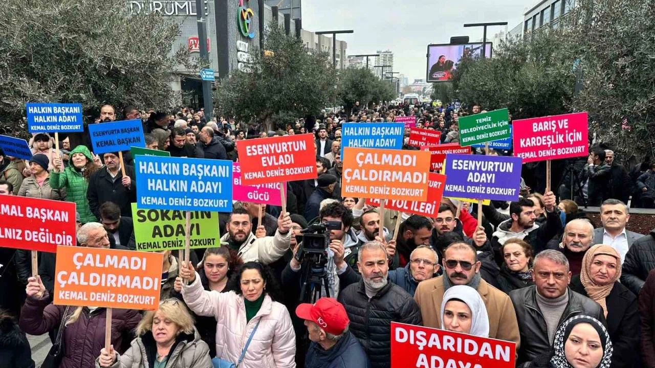 Esenyurt Belediye Başkanı Kemal Deniz Bozkurt'un, CHP tarafından yerel seçimlerde yeniden aday gösterilmemesi kararına sivil toplum kuruluşları ve yüzlerce vatandaş bir araya gelerek tepki gösterdi.