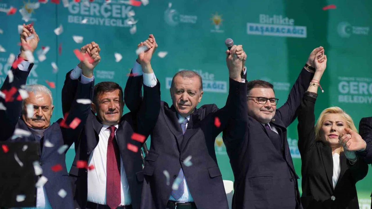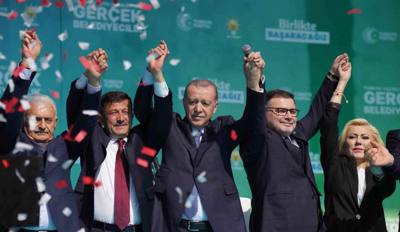 Cumhurbaşkanı Recep Tayyip Erdoğan, 31 Mart Yerel Seçimleri öncesi İzmir Gündoğdu Meydanı'nda "Büyük İzmir Mitingi" gerçekleştirdi. Dev mitingde önemli mesajlar veren Erdoğan, sahneye Sanatçı Cengiz Kurtuoğlu ile çıkarak "Duyanlara Duymayanlara" şarkısını söyledi. Binlerce vatandaşa seslenen Erdoğan, İzmir'e yapılan hizmetlerden bahsederek, "Kardeşlerim demir yollarında İzmir sınırları içindeki konvansiyonel hattı yeniledik. Aliağa-Selçuk arasındaki İZBAN'ı, Kemalpaşa Organize Sanayi Bölgesi'ne demir yolu bağlantı hattını bitirdik. İzmir, Ankara Yüksek Hızlı Tren hattının yapımına etaplar halinde devam ediyoruz. Halkapınar Otogar raylı sistem hattını ihale aşamasına getirdik. Adnan Menderes Havalimanı'nı baştan aşağı yenileyerek yolcu sayısını 5 katına çıkardık. 20 yıl önce Adnan Menderes Havalimanı'nın halini düşünün, neydi? Ama biz geldik ne oldu? Mordoğan, Eski Foça ve Güzelbahçe Yalı Balıkçı barınaklarını Sığacık, Çeşme ve Yeni Foça yat limanlarını tamamladık. Tarım ve Ormanda son 21 yılda şehrimize 38 baraj, 7 içme suyu tesisi, 44 sulama tesisi, 109 taşkın koruma tesisi, 8 gölet ve 8 yeraltı depolama tesisi yaptık. İzmir'de 94 bin dekar arazinin sulanmasına hizmet edecek olan 5 baraj daha inşa ediyoruz. Bitirdiğimiz sulama tesisleriyle 500 bin dekar araziyi sulamaya açtık. Çiftçilerimize yıllık 3 milyar 750 milyon lira zirai gelir artış sağladık. İnşaat safhasında yer alan 4 sulama tesisimizde 115 bin dekar araziyi daha sulayacağız. İzmirli çiftçilerimize bugüne kadar yaklaşık 64 milyar lira tutarında tarımsal hibe desteği verdik. Sanayi ve teknolojide 4 yeni organize sanayi bölgesi, 3 endüstri bölgesi, 4 teknopark kurduk. Dikili, Bayındır ve Kınık Sera Organize Tarım Bölgelerimizin yapımına devam ediyoruz. Bu 3 Sera Organize Tarım Bölgesi tamamlanıp faaliyete geçtiğinde çoğu kadın olmak üzere 8 bin kişiye ilave iş imkanı sağlayacak. İstihdamı desteklemek için İzmir'deki işverenlere 30 milyar lira prim teşviği verdik. Enerjide yaklaşık 1 milyon abonesi bulunan İzmir'de nüfusun yüzde 91'ine doğal gaz imkanı sunduk. Bu yıl Çeşme'ye ve 2026 yılında Karaburun'a da doğal gaz arzı planlıyoruz" ifadelerine yer verdi.