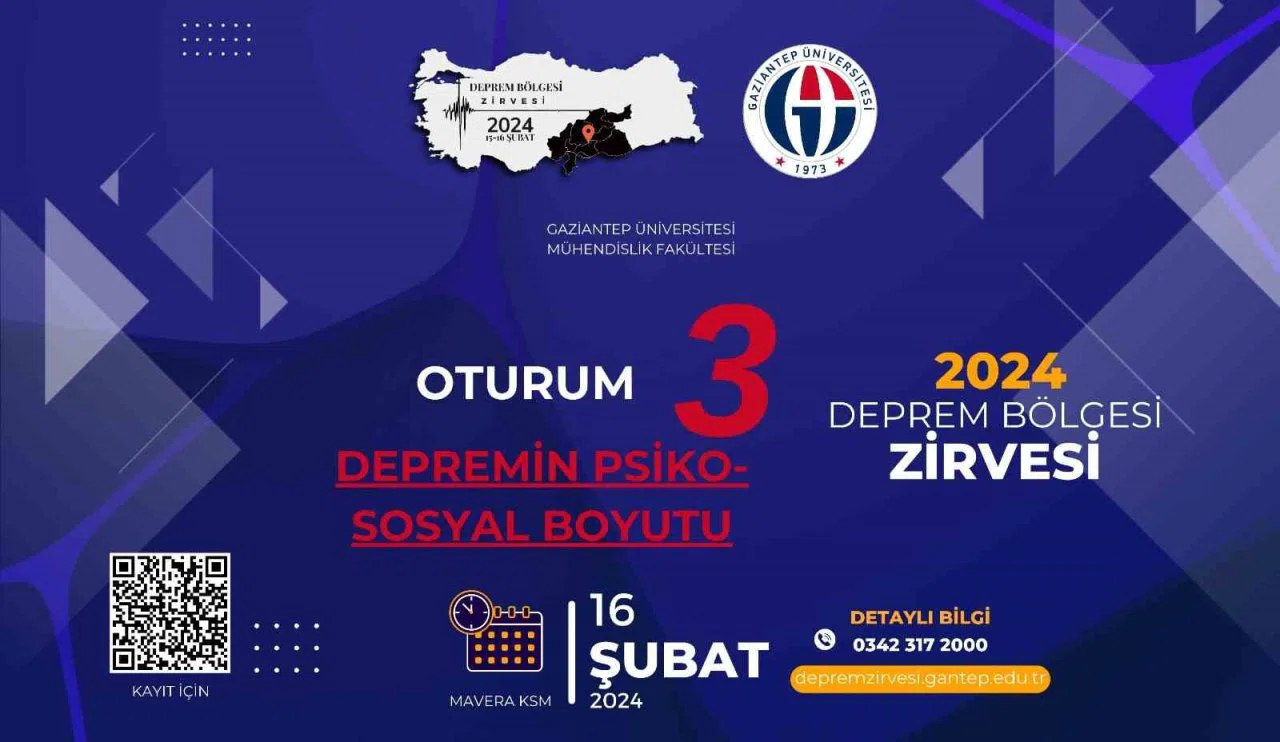 Gaziantep Üniversitesi (GAÜN) Mühendislik Fakültesi tarafından düzenlenecek olan Deprem Bölgesi Zirvesi'nde "Depremin Psikolojiye ve Sosyal Hayata Olan Yıkıcı Etkisi " ele alınacak.
