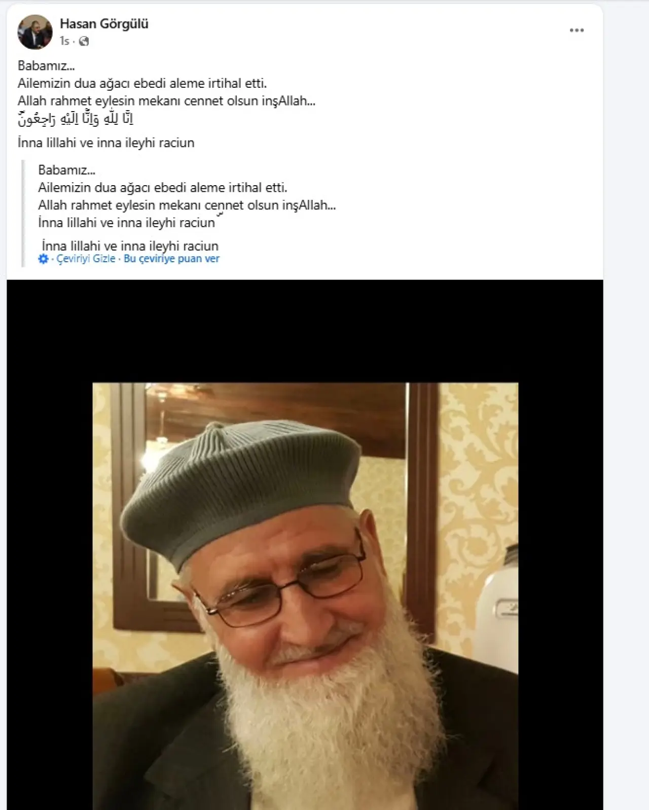 Konya Büyükşehir Belediyesi Ulaşım Dairesi Başkanı Hasan Görgülü’nün babası Tahsin Görgülü vefat etti. Acı haberi Hasan Görgülü, sosyal medya hesabı üzerinden paylaştı.
