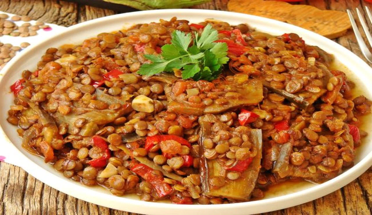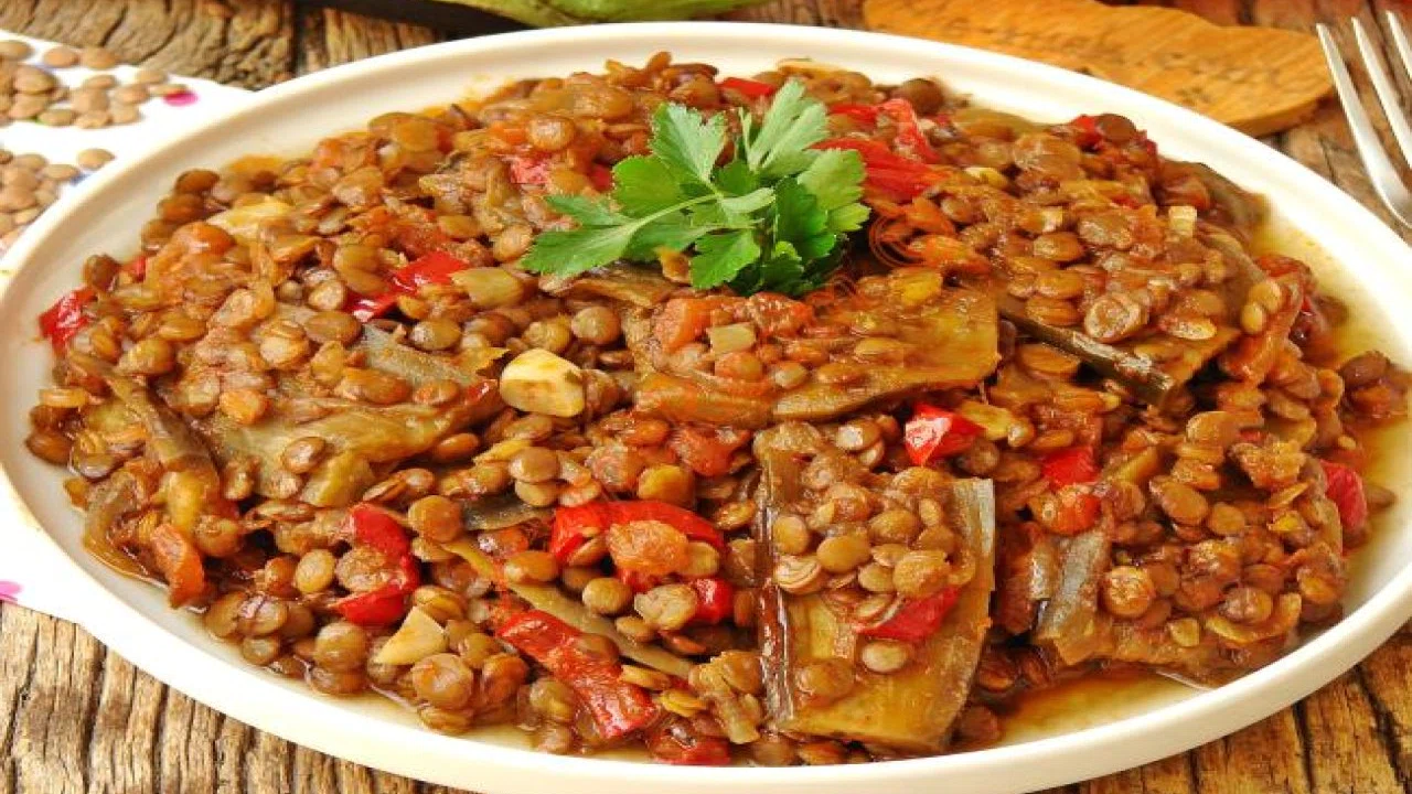 Haşlanan mercimeklerin suyu süzülür. Patlıcanlar, domatesler, soğanlar, salça ve baharatlar bir tencereye alınır. Üzerine mercimek suyu eklenir ve karıştırılır. Kısık ateşte pişirilir.