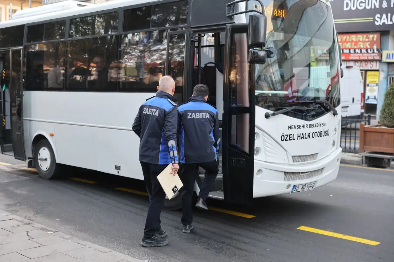 Nevşehir Belediyesi Zabıta Müdürlüğü ekipleri, özel halk otobüslerine yönelik denetim ve kontrollerini sürdürüyor.