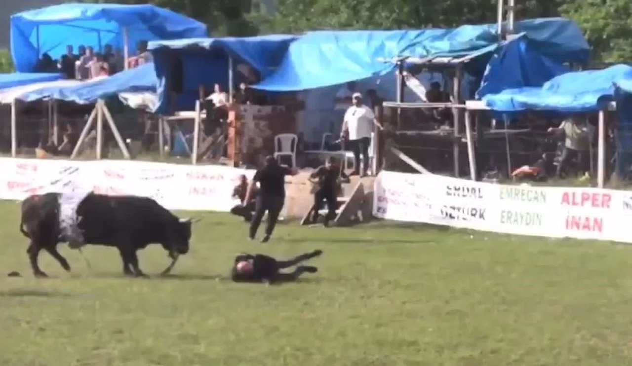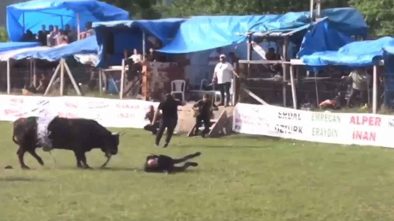 Boğa, darbesiyle yere düşen sahibini boynuz darbeleriyle hafif şekilde yaraladı. Olayın ardından alanda kısa süreli panik yaşandı.